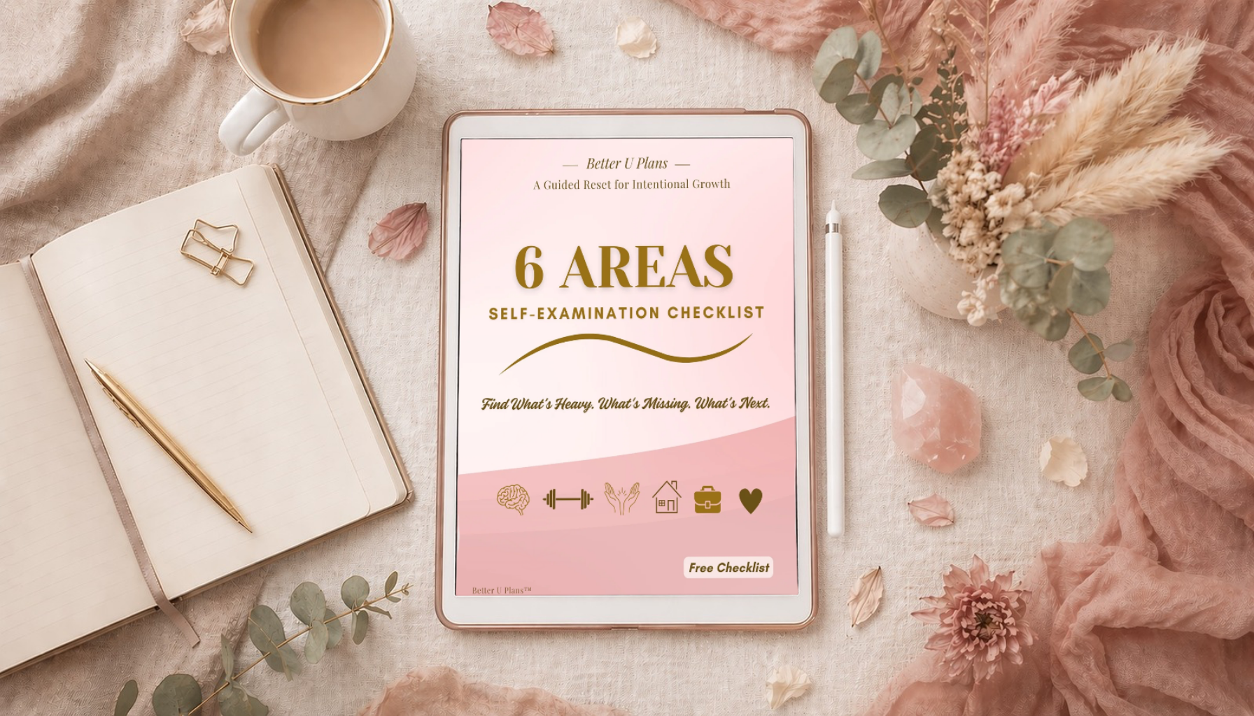 This guided checklist walks you through all six life areas: Mentality, Physicality, Spirituality, Family, Career, and Lifestyle, so you can finally name what's heavy and choose your next right step.